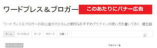 どうせ貼るならバナー広告は目立つところにスッキリと貼りたい。 と、いうことで今回はサイトタイトルの横にバナー広告を貼る方法をメモする。