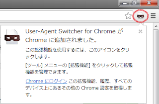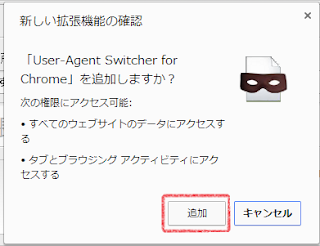 「User-Agent Switcher for Chrome」を追加しますか? 次の権限に・・・と出るので、問題なければ「追加」をクリックします。