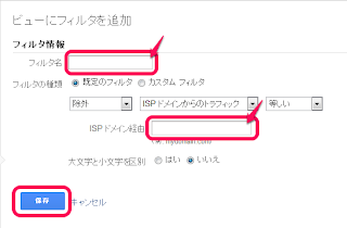 フィルタ情報のフィルタ名に任意の文字を入力します。