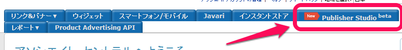 - オレンジで囲った「amazon Publisher Studio」をクリックすると、amazonアソシエイト画面に移動します。