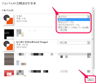 ブログで画像を表示させる場合は、自分だけ以外の設定にしておきます。