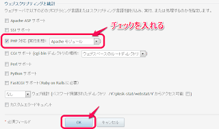 設定は、データベース、ホスティング、PHPの3箇所です。簡単インストールを行う場合は、データベースの作成は不要です。データベースの作成