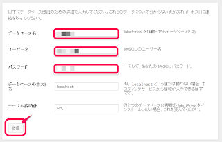 ここに入力するのは、上のデータベース設定で入力した文字です。