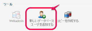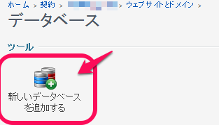 ドメインタブから、インストールするドメイン名を選択して、「ウェブサイトとドメイン」をクリックし、データベースを選択します。ツールの新しいデータベースを追加するをクリックします。