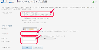 ウェブサイトホスティングをクリックして、任意のユーザー名とパスワードを入力します。