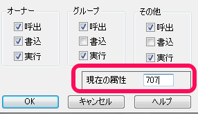 現在の属性(777)を755に変更して「OK]をクリックします。