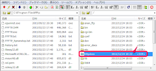 FFFTPソフトを起動して、httpdocs内のwordpressフォルダを右クリックして属性変更を選択します。