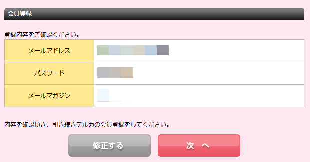 登録内容の確認画面になります。間違えいなければ「次へ」ボタンをクリックします。