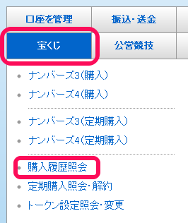 「宝くじ」のナンバーズ3(購入)をクリックします。