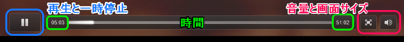 動画再生プレイヤーは非常にシンプルで簡単に操作できました。画像の青枠部分で再生と一時停止ができます。