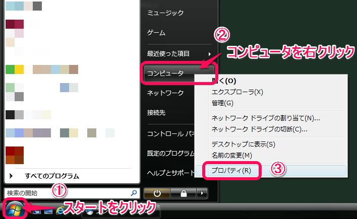 スタートをクリックして、コンピュータを右クリックし、プロパティを選択します。コンピュータの基本的な情報の表示のシステムから、Windows エクスペリエンス インデックスをクリックします。(この画像は、ブログを書いているノートパソコンの画像です。今回グラボを増設したパソコンとは別のものです。)