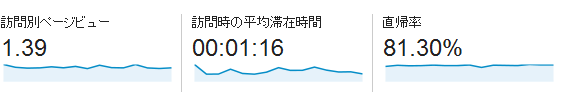 この表示方法のときの「訪問別ページビュー」「訪問時の平均滞在時間」「直帰率」はこのようになります。