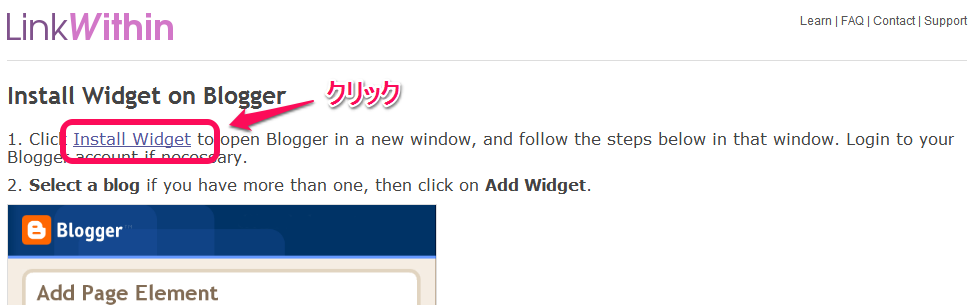 ウィジェットのインストール説明ページに移動します。「Install Widget」をクリックします。