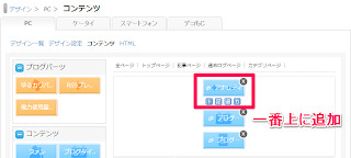 HTMLに追加する方法以外にも、コンテンツの自形式を追加する方法もあります。この方法はHTMLに追加するのに比べると間単に追加することがでます。