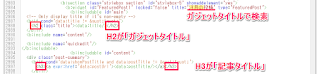 このブログの場合、トップページのカテゴリタイトル(WordPress、Blogger、禁煙やSeesaaなど)は、H2となっています。そこで、今回はガジェットタイトルをH3に変更します。
