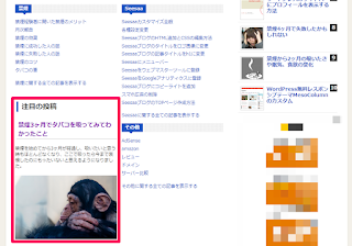 上の画像は、ガジェットのタイトルを「注目の投稿」、投稿タイトルと画像ともに「表示」の設定にしています。見た目のカスタマイズ